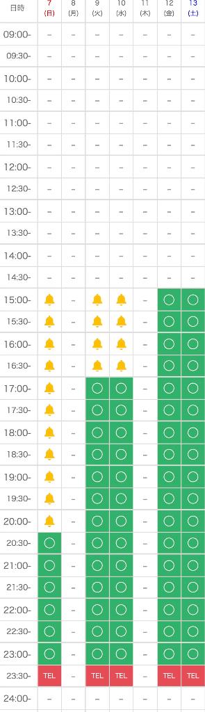 現在待機中 12:00- 03:30 | 12:00 - 03:30 | 15:00 - 03:30 | 12:00 - 03:30 | 12:00 - 03:30 | 12:00 - 03:30 | 12:00 - 03:30 |